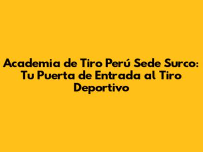 No esperes más para dar el primer paso. Investiga las academias de tiro en Surco, compara las opciones y elige aquella que mejor se adapte a tus necesidades y objetivos. InscrÃbete en clases, participa en programas de entrenamiento y comienza a disfrutar de los beneficios del tiro deportivo. Desarrolla tu concentración, mejora tu coordinación, aprende a controlar tus emociones y conoce a personas con intereses similares. El tiro deportivo es un deporte que te desafiará, te motivará y te recompensará de muchas maneras.