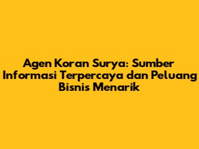 Agen Koran Surya: Informasi Terkini Dan Peluang Bisnis Menarik