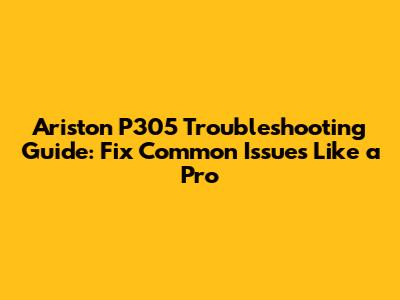 Ariston P305: Troubleshooting Guide, Common Issues & Fixes