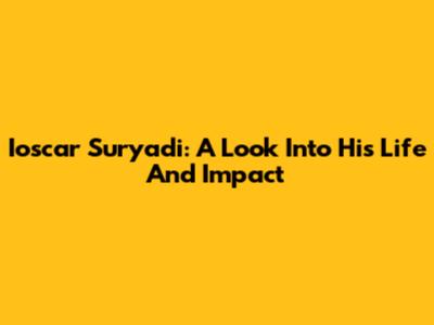 Ioscar Suryadi: A Look Into His Life And Impact