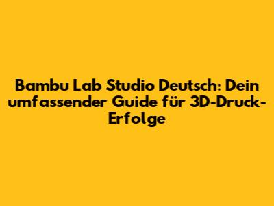 Bambu Lab Studio Deutsch: Der Ultimative Guide Für 3D-Druck-Enthusiasten