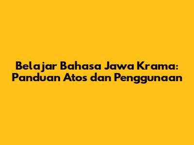 Belajar Bahasa Jawa Krama: Panduan Atos Dan Penggunaan