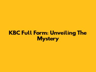 KBC Full Form: Unveiling The Mystery