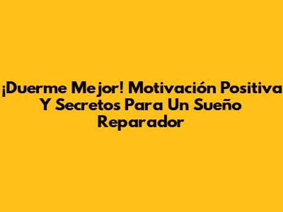 ¡Duerme Mejor! Motivación Positiva Y Secretos Para Un Sueño Reparador