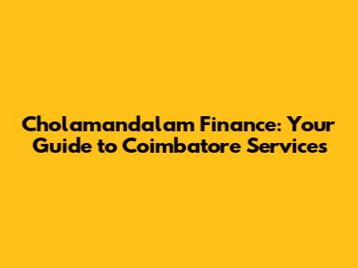 Understanding Cholamandalam Finance's Presence in Coimbatore