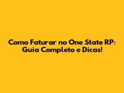 Palavras-chave: One State RP, ganhar dinheiro, faturar, guia completo, dicas, trabalhos, negócios, mercado financeiro, investimentos, otimização de tempo, produtividade, roleplaying, jogos, comunidade.
