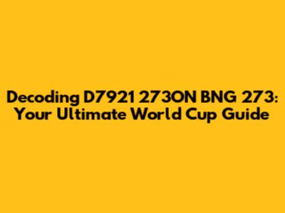 Decoding D7921 273ON BNG 273: Your World Cup Guide