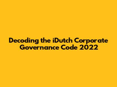 Decoding The IDutch Corporate Governance Code 2022