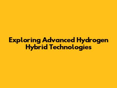 Exploring Advanced Hydrogen Hybrid Technologies