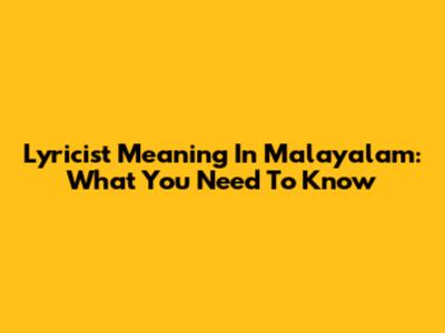 Lyricist Meaning In Malayalam: What You Need To Know