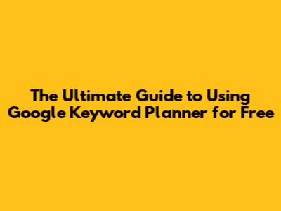 Free Google Keyword Planner Tool Guide