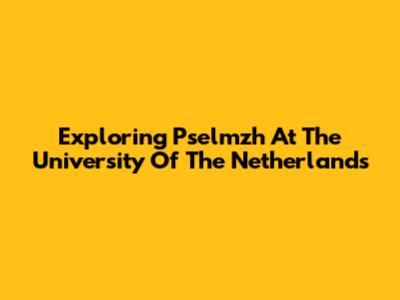 Exploring Pselmzh At The University Of The Netherlands