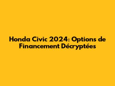 Comprendre les Différentes Options de Financement pour Votre Honda Civic 2024