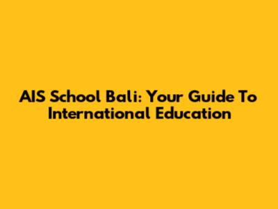 AIS School Bali: Your Guide To International Education