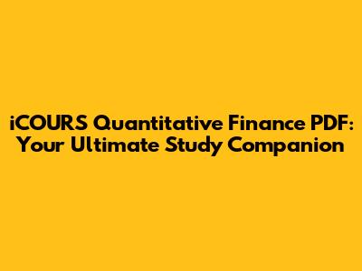 Hey there, finance enthusiasts! Are you diving deep into the world of quantitative finance and looking for some top-notch resources? If you've stumbled upon or are searching for the iCOURS Quantitative Finance PDF, you're in luck! This guide is all about unlocking the power of this study material, making your learning journey smoother and more effective. We'll break down what makes it so valuable and how you can best leverage it to ace your exams and build a solid foundation in this complex field. So, grab a coffee, settle in, and let's get this party started!