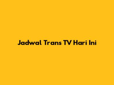 Jadwal Trans TV Hari Ini