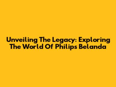 Unveiling The Legacy: Exploring The World Of Philips Belanda