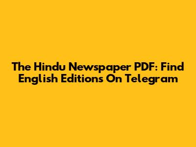 The Hindu Newspaper PDF: Find English Editions On Telegram