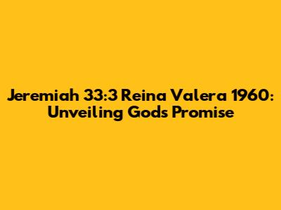 Hey guys! Today, let's dive deep into one of the most powerful verses in the Bible: Jeremiah 33:3, as it appears in the Reina Valera 1960 translation. This verse is not just a piece of scripture; it's a direct line to understanding God's promises and how we can connect with Him on a more profound level. We're going to break down the verse, explore its context, and see how it applies to our lives today. So, grab your Bibles (or your favorite Bible app) and let's get started!