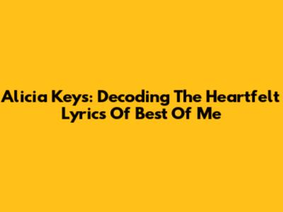 Alicia Keys: Decoding The Heartfelt Lyrics Of 'Best Of Me'