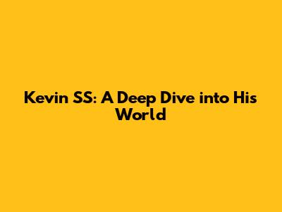Kevin SS: A Deep Dive Into His World