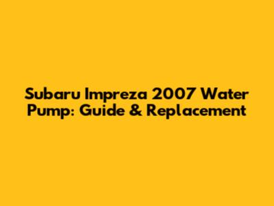 Subaru Impreza 2007 Water Pump: Guide & Replacement