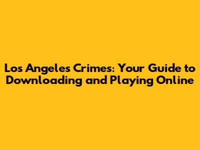 LA Crimes: Where To Download & Play Online