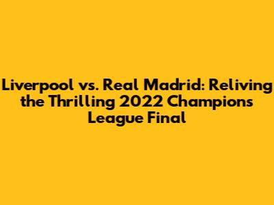Hey sports fans! Remember the electric atmosphere of the 2022 Champions League final? It was a clash for the ages, pitting the titans of European football, Liverpool and Real Madrid, against each other. The match was more than just a game; it was a narrative, a battle of wills, and a showcase of footballing excellence. Let's rewind the clock and dive back into this unforgettable encounter, exploring the key moments, tactical nuances, and lasting legacy of the Liverpool vs. Real Madrid 2022 final. Get ready to relive the drama, the passion, and the unforgettable memories of that night!