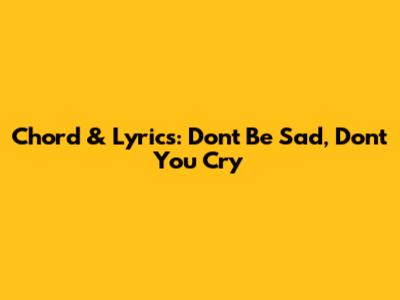Chord & Lyrics: Don't Be Sad, Don't You Cry