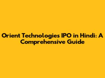 Orient Technologies IPO In Hindi: A Comprehensive Guide