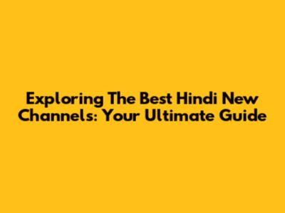 Exploring The Best Hindi New Channels: Your Ultimate Guide