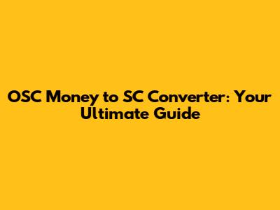 OSC Money To SC Converter: Your Ultimate Guide