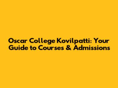 Are you looking for a college in Kovilpatti that offers a wide range of courses and a supportive learning environment? Look no further than Oscar College Kovilpatti! This comprehensive guide will provide you with everything you need to know about the college, from its history and courses offered to its admission process and campus life. So, let's dive in and explore what makes Oscar College a great choice for your higher education journey.