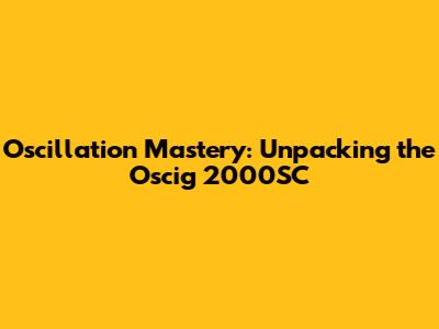 The Oscig 2000SC: A Closer Look