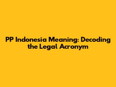 Hey guys! Ever stumbled upon "PP" in Indonesian legal or governmental documents and felt a bit lost? You're not alone! "PP" is a super common abbreviation in Indonesia, and understanding what it means is key to navigating a whole range of topics, from business regulations to environmental policies. So, let's break it down in a way that's easy to grasp. In essence, PP stands for Peraturan Pemerintah, which translates to Government Regulation in English. Think of it as a crucial piece of the Indonesian legal framework – a step below the Undang-Undang (Laws) but carrying significant weight in implementing and elaborating on those laws. These regulations are issued by the President of Indonesia to put existing laws into action, providing the specifics and details needed for effective implementation. Understanding Peraturan Pemerintah is essential for anyone doing business in Indonesia, working with government agencies, or simply wanting to be well-informed about the country's legal landscape. They provide the operational guidelines and detailed procedures that businesses and individuals must follow to comply with the overarching laws passed by the parliament. For instance, a law might establish a general framework for environmental protection, while a related Peraturan Pemerintah would outline specific emission standards, permitting processes, and enforcement mechanisms. Government Regulations are vital for clarifying ambiguities within the laws themselves. Laws are often broad in scope, setting out general principles and objectives. However, the practical application of these laws requires detailed rules and procedures. Peraturan Pemerintah fills this gap by providing the necessary clarity and guidance. This ensures that laws are applied consistently and fairly across different situations and contexts. Moreover, PP allows the government to adapt quickly to changing circumstances without having to go through the lengthy process of amending the laws themselves. This flexibility is particularly important in rapidly evolving fields such as technology, finance, and environmental management. By issuing new or updated Peraturan Pemerintah, the government can respond to emerging challenges and opportunities in a timely and effective manner. Furthermore, Peraturan Pemerintah often involves extensive consultation with relevant stakeholders, including businesses, civil society organizations, and academic experts. This ensures that the regulations are well-informed, practical, and take into account the diverse perspectives of those who will be affected by them. This collaborative approach helps to build consensus and promote compliance. So, next time you encounter "PP" in an Indonesian context, remember it stands for Peraturan Pemerintah – a vital key to unlocking the specifics of Indonesian law and policy!