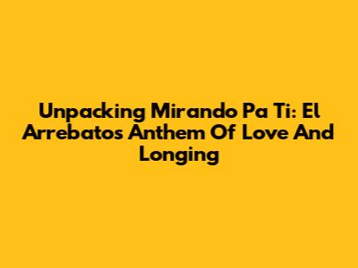 Unpacking 'Mirando Pa Ti': El Arrebato's Anthem Of Love And Longing