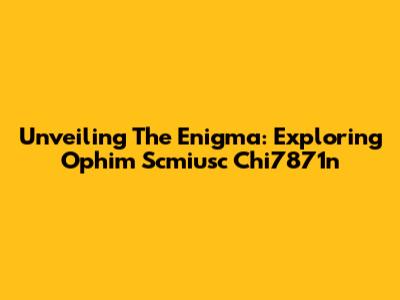 Unveiling The Enigma: Exploring Ophim Scmiusc Chi7871n