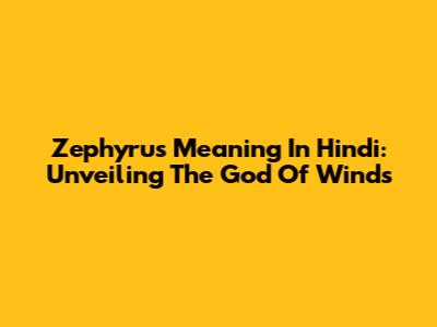 Zephyrus Meaning In Hindi: Unveiling The God Of Winds