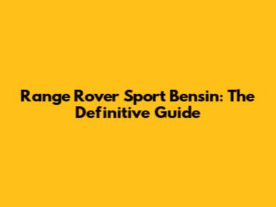 Range Rover Sport Bensin: Ultimate Guide