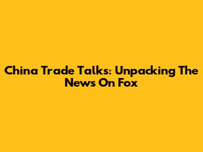 China Trade Talks: Unpacking The News On Fox