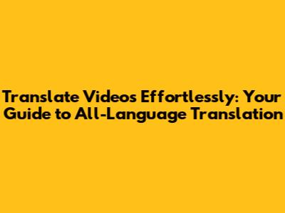 Translate Videos Effortlessly: Your Guide To All-Language Translation