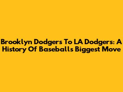 Brooklyn Dodgers To LA Dodgers: A History Of Baseball's Biggest Move