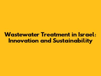 Wastewater Treatment In Israel: Innovation And Sustainability