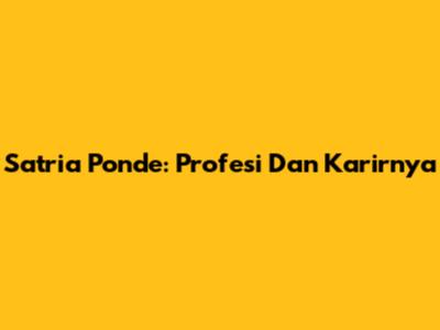 Satria Ponde: Profesi Dan Karirnya